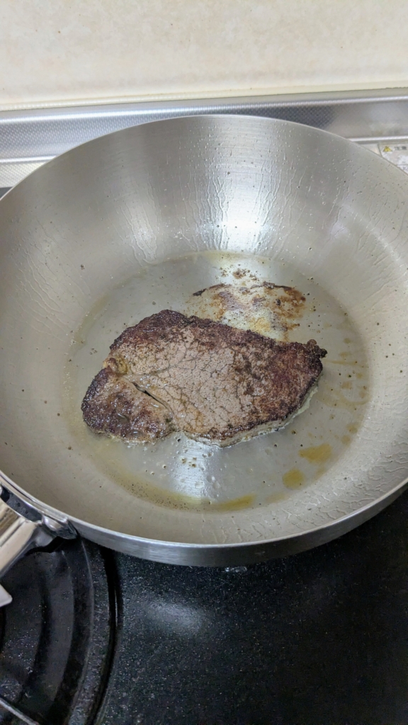 ■フジノスのアルミクラッド三層フライパン(中華鍋)でステーキを焼いたのでブログ記事を書いておこうと思います。