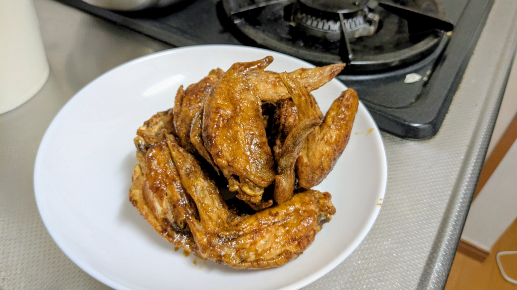 タレとコショウ(スパイス)を絡め、最高においしい茶色の物体完成!