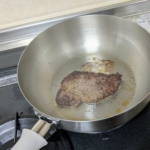 フジノスのアルミクラッド三層フライパン(中華鍋)で焼くステーキ