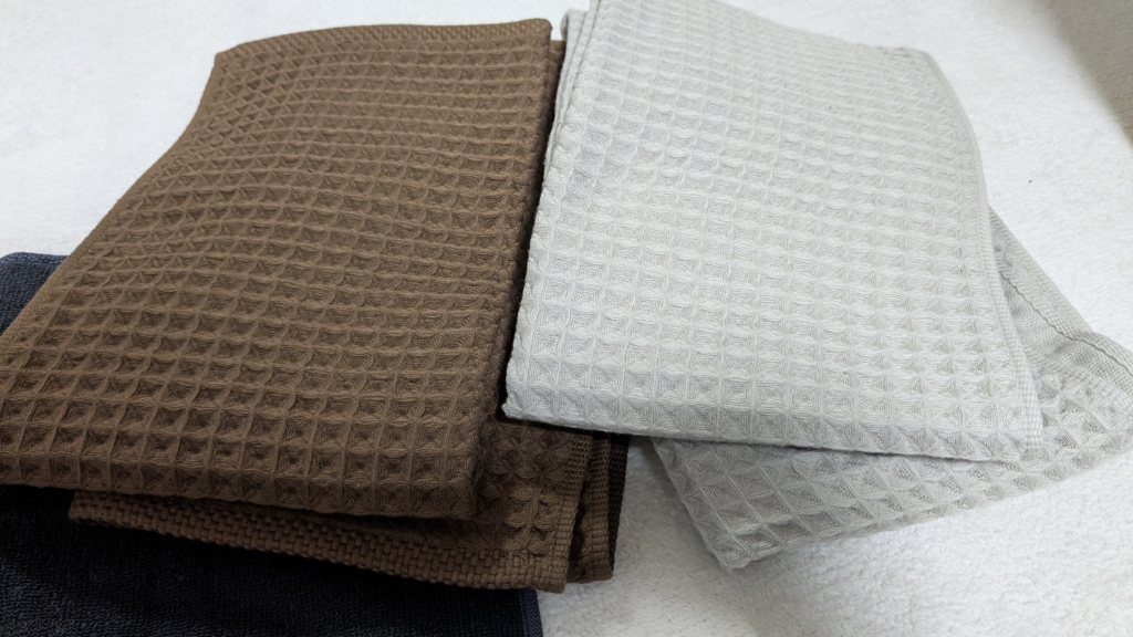 より毛羽が出にくいというワッフル生地のバスタオルを試してみることに。